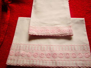 Parure de lit de bébé couleur blanche parement un galon brodé rose en coton en très bon état dimensions du drap 166 cm sur 92 cm oreiller assorti dimensions 37 cm sur 48 cm