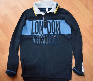 10 ans. Polo manches longues.Okaidi. Très bon état. 4 euros - Polo manches longues. - Couleur: Bleu marine. - Taille: 10 ans. - Marque: Okaidi - Rayures jaunes et bleues