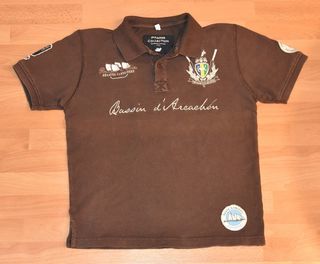 Polo chocolat. PINASSE Collection. 12 ans. Très bon état - Polo - Chocolat - Taille: 12 ans - Marque: Pinasse Collection - Encolure 2 boutons - Motifs brodés poitrine, dos
