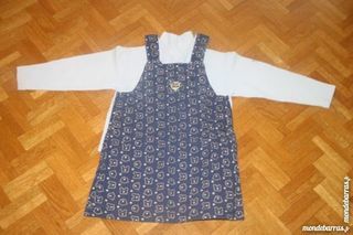Très jolie robe marine motifs oursons "Clopy clopa", entièrement doublée de flanelle bleu ciel. Style salopette avec scratchs sur les épaules, poche à fermeture éclair sur le d