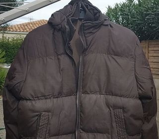 Blouson à Capuche Maille Côtes Doublé Marron/Beige - Ado/Garçon : 12-14 Ans Chaleureuse Doudoune avec Capuche Zippée et poches pratiques : 1 intérieure à scratch + 2 devant D