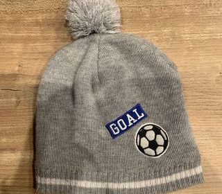 Vends Bonnet enfant garçon Zeeman motif \'\' Football \'\' - Taille 4 / 7 ans ( 53 cm ) - Couleur gris - Très bon état - Prix 3 euros