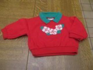 Tee shirt rouge avec motif fleurs et col vert 3 mois - rouge - vert et blanc - très bon état contact : m2011