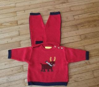 F 9 (26) - 6 mois - Ensemble rouge avec un cerf "D.P.A.M."
