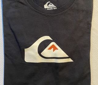 Voici un T-shirt de la marque QuikSilver de couleur noire, logo blanc et orange. Quick tab brodé logo manche gauche 100% coton Taille 14 ans N'hésitez pas à m'envoyer u