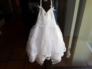 Robe de cérémonie blanche avec des dentelles, doublée, formée de 3 volants avec le dos nu. Peut-être utilisée pour un baptême. Age de 6 à 12 mois Pour consulter toutes les of