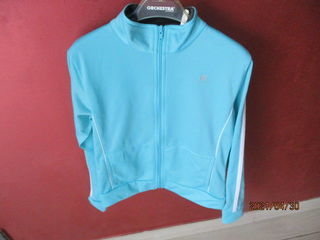 Stwed, taille 12 ans, marque Domyos, devant fermeture éclair, couleur turquoise , manches longues avec poignet, une poche fendue de chaque côté, très bon état