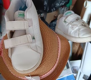 Chapeau de paille neuf 4 euros Basket 25 bon état 10 euros Survêtement 5 ans bon état 8 euros