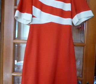 ROBE EN JERSEY ROUGE ET BLANC A MANCHES COURTES POUR FEMME T 40/42 DOUBLEE SUR TOUTE LA LONGUEUR EN BLANC SUR L'ARRIERE 1 FERMETURE ECLAIR DE 51 CM