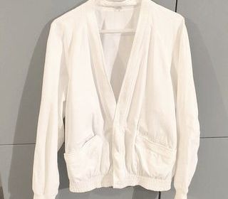 Blouson d'été blanc en coton., taille 3 / L Blouson en coton 100/100. Taille L. Fabrication Française. Blanc. Parfait état. Poches intérieures et extérieures. Boutons blanc