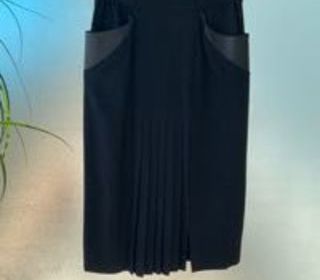 JUPE lainage noir très belle qualité poches soulignées de cuir long. 78cm