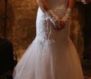 TRES BELLE ROBE DE MARIEE TAILLE 36 A 38 BUSTIER + FUSEAU INCRUSTE DE DENTELLE, PERLES ET STRASS DOS NU EN TULLE SOUPLE TRANSPARENT, INCRUSTATION DE DENTELLE JE DONNE EN PLUS U