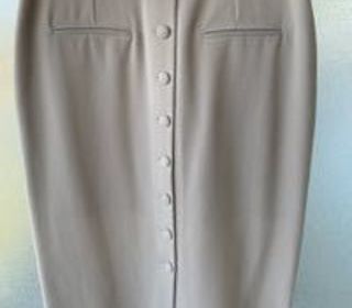 JUPE BEIGE CLAIR EN LAINE ET POLYESTER DROITE TOUTE BOUTONNà‰E DEVANT