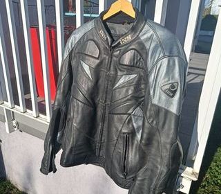 Vends blouson moto en cuir, noir et gris, marque IXS, avec doublure, bon état, poids 3 kgs.