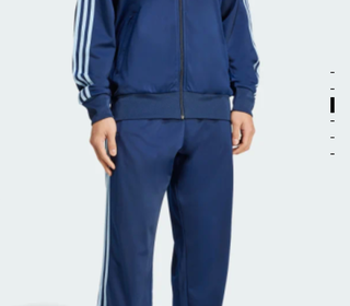 Survêtement complet pour homme, composé d'une veste et d'un pantalon. La veste se ferme à l'aide d'une fermeture éclair et possède des manches longues avec trois bandes contrastant
