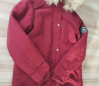 Veste avec capuche avec fausse fourrure. Cordon à la taille. Très bon état, très peu portée. (Bouts de manches très légèrement bouloché).