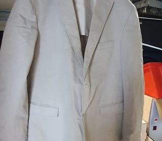 Veste Laurent Cerrer, couleur anthracite, taille 54, en polyester et viscose OU Veste Bruno St Hilaire, couleur beige, taille 60, petite brûlure (voir photo) ou autre veste beige