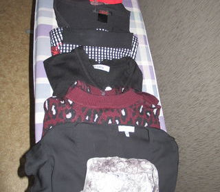 Vend 1 lot de vêtements femme S et XS - 1 jupe grise et noire taille XS - 1 pull à capuche avec motifs dorés marque Le temps des cerises taille XXS - 1 jupe Desigual taille S