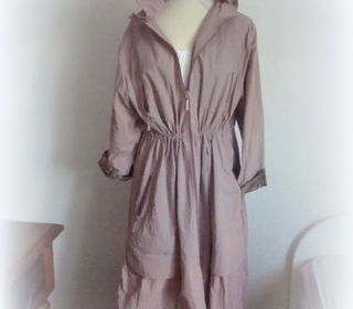 Imperméable capuche Imper vieux rose doublure mordoré * très souple et très léger. * Taille et bas élastiqués (plus ou moins ...) * Fermetures éclairs poches poitrine et poc