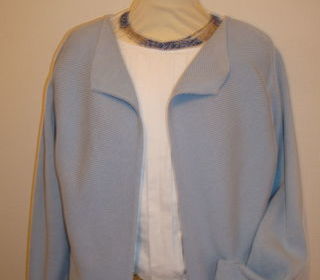 Gilet maille ' 1- 2- 3 ' - couleur bleu ciel - taille 42 - Parfait état (contacter par MP)