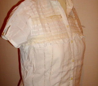 Chemisier manches courtes ballon . Raffinement par l'association de dentelles, petits plis et volants. Parfait état