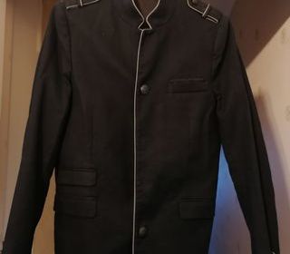 Veste homme - Taille 40 (T 44 Italie) - Noire - Liseré gris - Coton et élasthane - boutons sur les manches - Marque Kooples - Prix 100 €