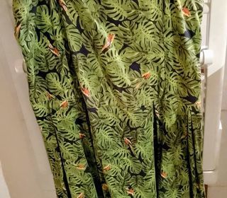 sans manches, épaules découvertes, motifs verts avec des oiseaux