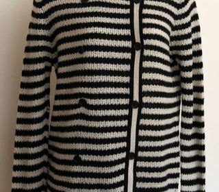 Pull marinière noir SONIA RYKIEL T.X.L T42/44 Fr laine noire, beige clair coupe droite croisée fermeture boutons siglés H 68 cm Aiss 50 cm TBE Envoi possible RMP métro Co
