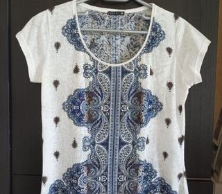 Blouse / tee shirt Complètement neuf puisque jamais porté Taille : 54/56 Coton, brodé Prix : 12€ (très petit prix !) Envoi possible
