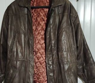 Une veste cuir vachette marron 48 une paire de chaussures de ville marron 44 un pull rayé bleu marine XL et une besace PSG le tout pour 48€ en très bon état remise main propre Quim