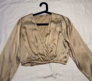 Magnifique chemisier croisé c?ur Marque NA-KD Taille 34 coloris bronze clair A porter sur un jean ou pantalon noir