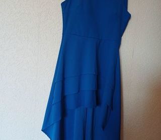 Robe soirée couleur bleue, jamais portée, robe courte devant 73 cm robe longue derrière 115 cm coques poitrine intégrées fermeture éclair pour la fermer