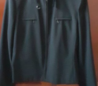 Blouson noir 95% polyester 5% spandex entièrement doublé-état neuf hauteur dos 57cm-fermeture éclair col officier-légèrement cintré taille 42