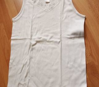 Très joli chemisier noir (légèrement transparent), à porter avec un caraco. Fleurs brodées sur le devant. 100% viscose. Il est en parfait état.