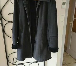 vends manteau en daim noir fourrure poignée et col et a l'interieur tres chaud taille 42 tres bon état