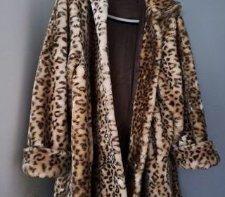 Veste léopard, très neuve, à capuche, fausse fourrure, mi-longue, fourrée.