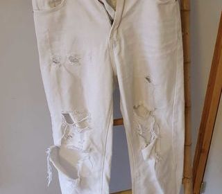 Jean troué blanc en très bon état, possibilité de faire des lots