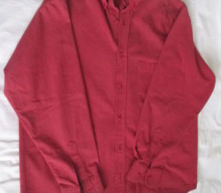 Chemise homme à manches longues. Couleur rouge brique. Très peu portée. Marque COVETT CISEAUX D'ARGENT, taille M/L. 1 poche sur le devant. Fermée par des boutons. Poigné fermé par