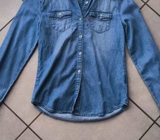 veste en jeans 10 ans bleu ciel avec 2 poches devant et fermeture avec boutons propre a venir récupérer sur meilhaud pas d'envoi 6 euros.