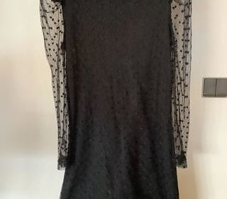 Robe noire marque sinéquanonne, doublée. Très bel empiècement aux épaules, manches en voile. Venez l'essayer !