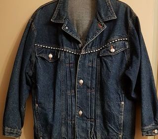 Blouson en jean, taille 38/40 (M) Largeur d'épaules : 49cm Hauteur dos : 69cm En parfait état, très peu porté Annonce en ligne = article disponible Pour les envois, paiement p