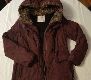 Joli manteau femme pull&bear couleur Bordeau idéal pour aller au ski double capuches taille 34 en très bon état