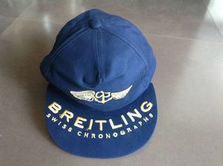 Casquette Breitling bleu foncé avec logo brodé or. Taille réglable par scratch. Neuve, jamais portée