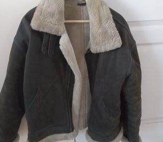 manteau en peau retournée fourré intérieur avec capuche amovible très bon état taille 38- 40