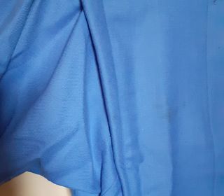 Djellaba tissu aspect velours brillant, rayé dans les tons de bleu, mauve, bordeaux. Taille M/L Dimensions prises à plat : - Largeur sous les bras : 58cm - Longueur : 1m33 Man