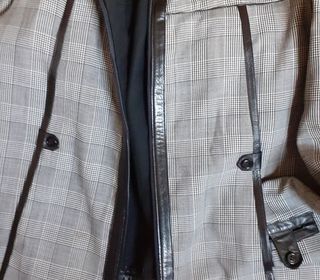 Blouson homme taille 4/5, reversible, un côté noir, l'autre carreaux pied de poule, fermeture ZIP, gansé de cuir, manches fermées par bouton, deux poches intérieures et deuc poches