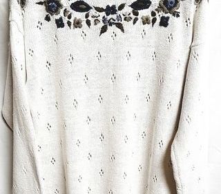 Pull blanc brodé, en coton et ramié. Jamais porté Taille 40 Largeur épaules : 55cm Hauteur milieu dos : 67cm Annonce en ligne= article disponible Pour les envois, paiement par