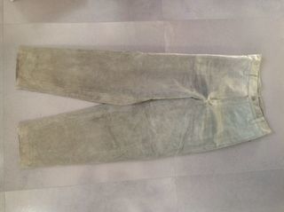 Pantalon en daim vert doublé La taille comporte des pattes pour passer une ceinture et il y a 4 poches zippées, - 2 verticales sur les côtés - 2 horizontales sur l'arrière Il