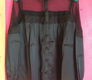 Bonjour, Reçu en cadeau mais trop grande taille pour moi. Superbe chemisier en dentelles, satin & plumetis. Boutonné devant. Taille 40. Marque BLANCHE PORTE. NEUF, dans son emba