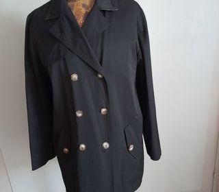 Trench bleu marine -marque LEDEL PARIS (acheté au Printemps magasin) largeur épaules 44 --longueur 80 cm-- avec ceinture-- doublé écossais ton beige marron- fermé par 6 boutons